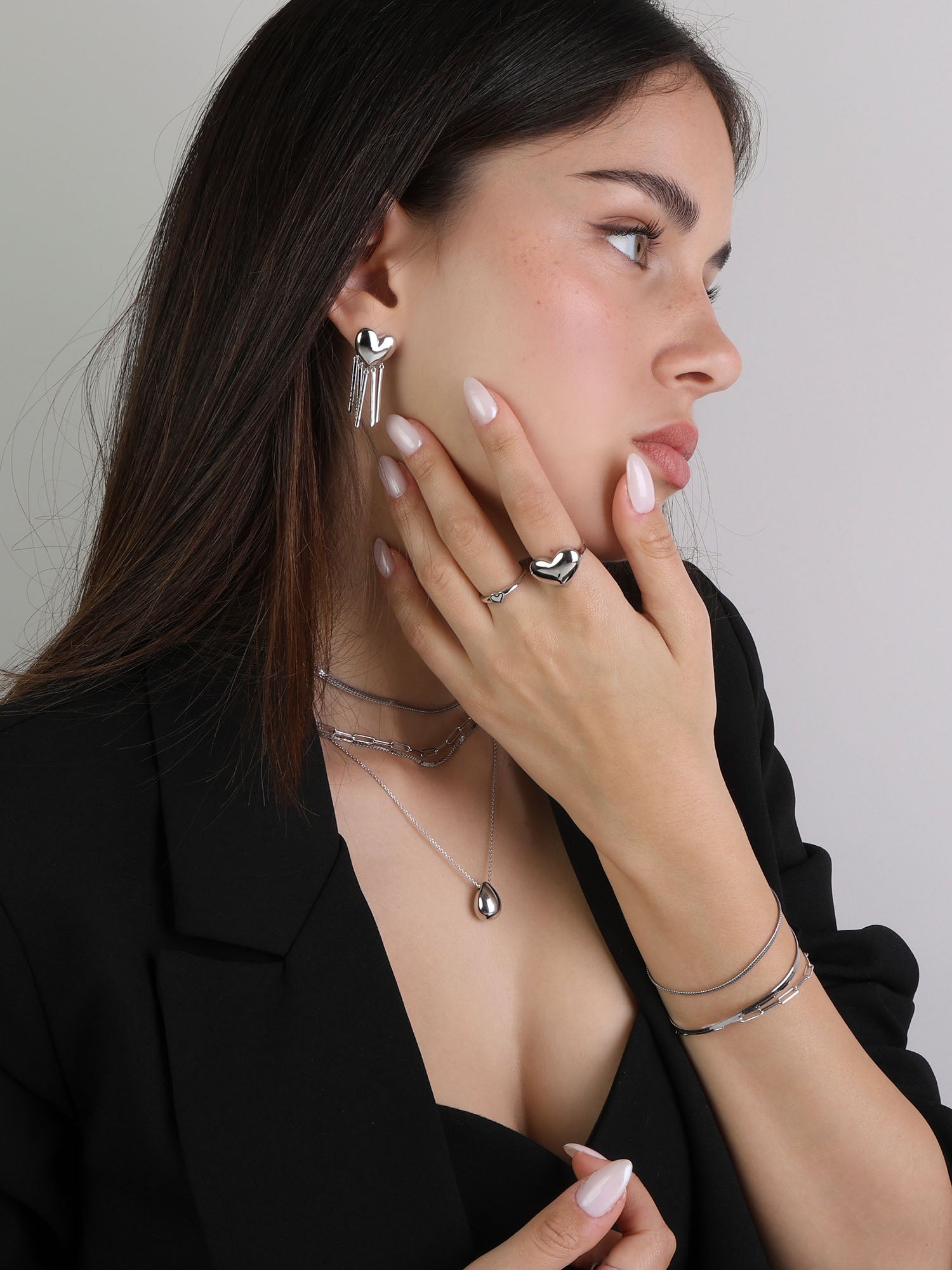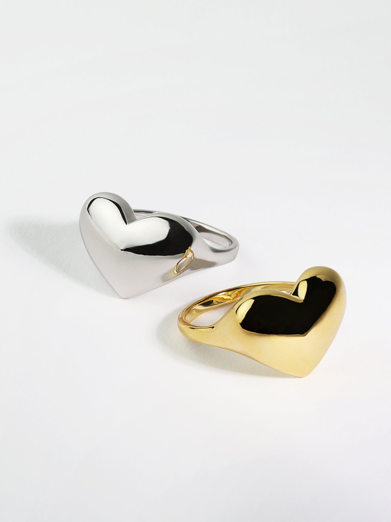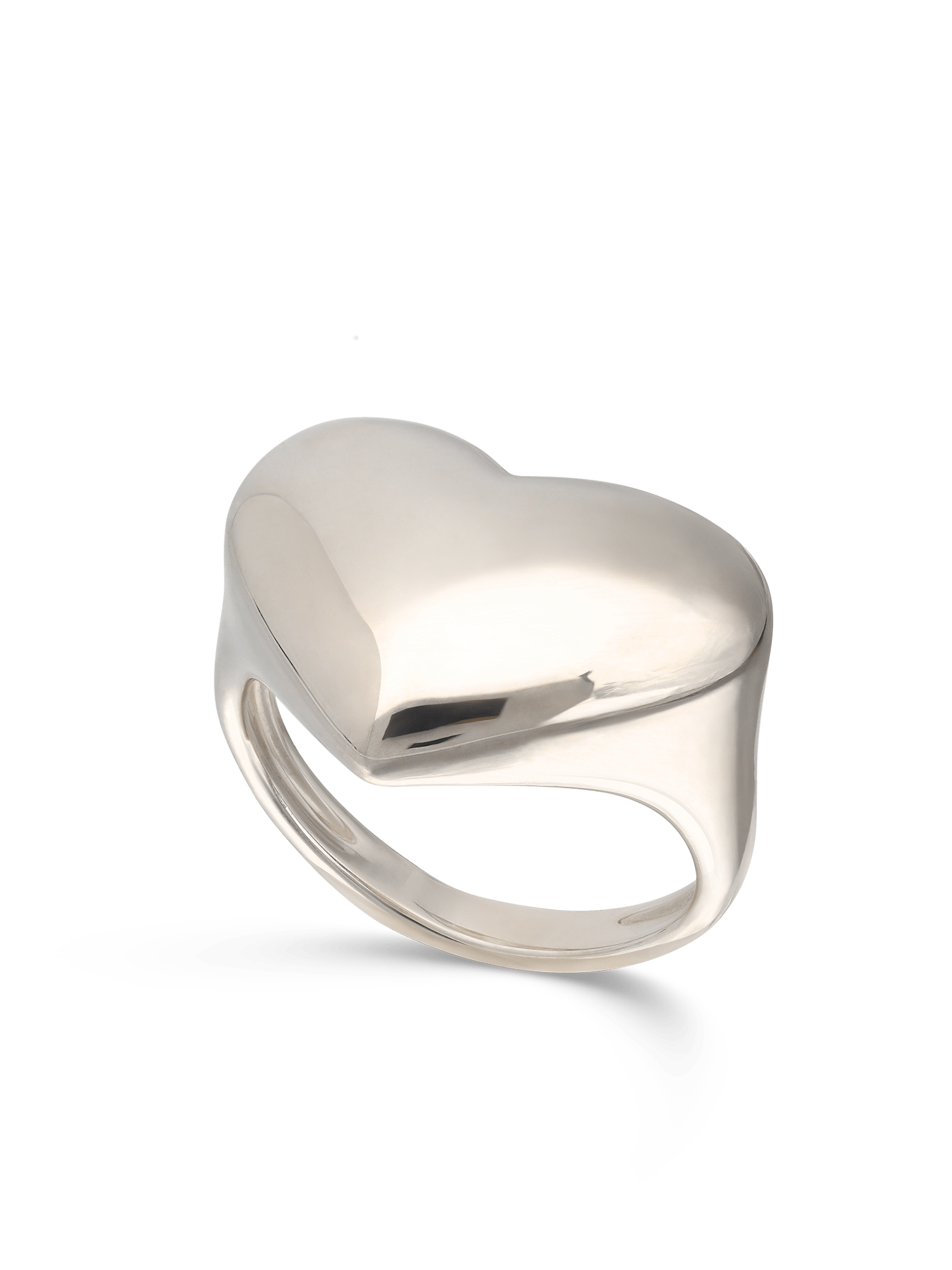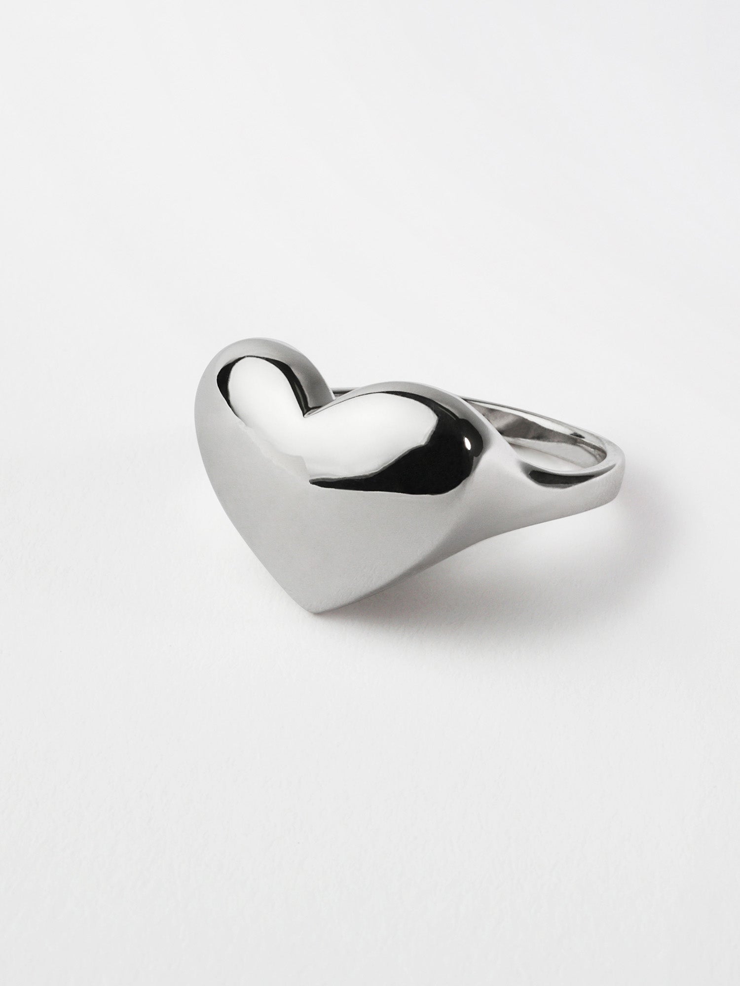 Anel grande, Prata de lei 925, Nenhuma pedra, Sem cor, Coração, Prateado, 3.39 gramas.