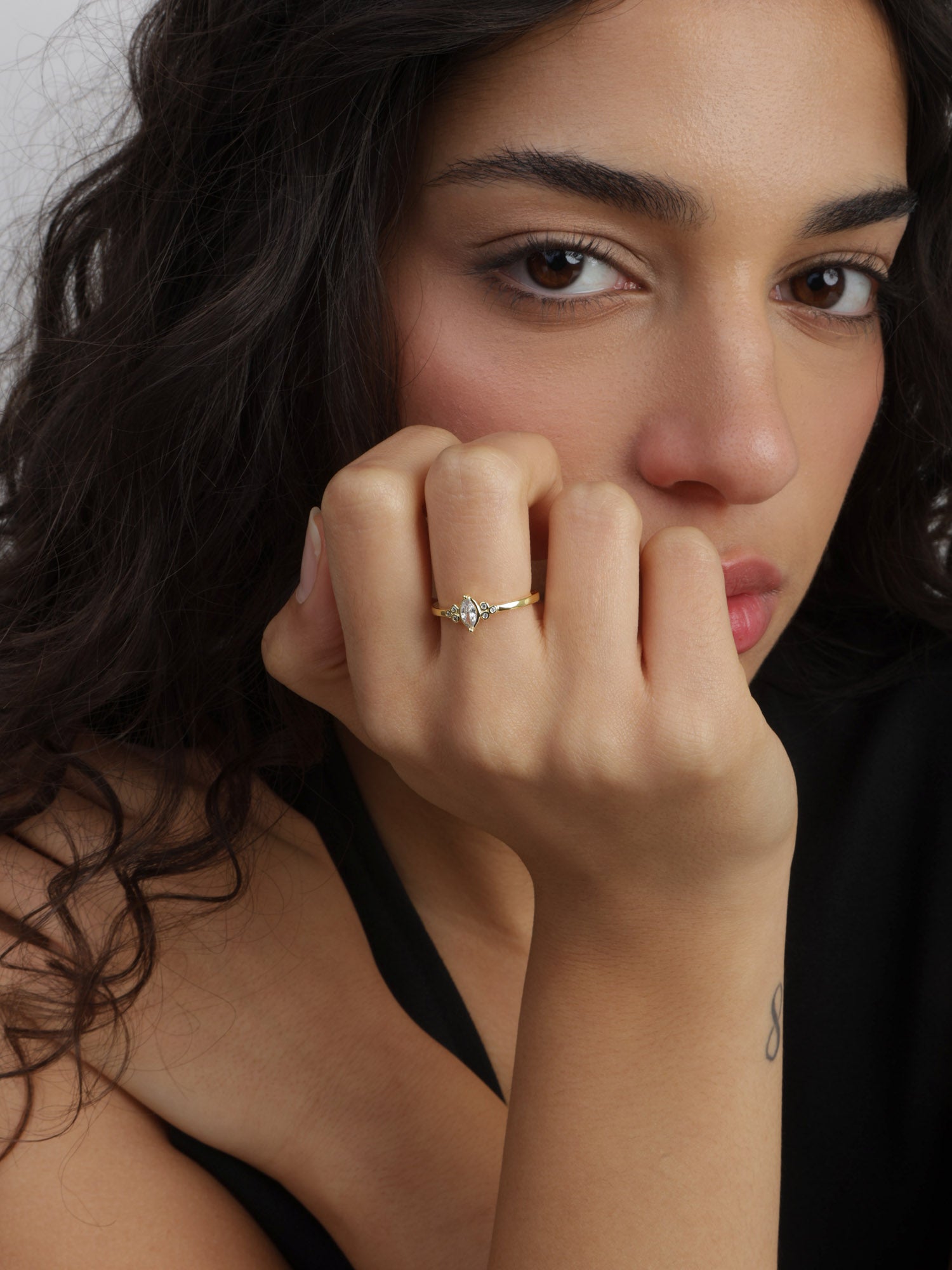 Anel Delicado, Banhado a Ouro, Zircónia de cultivo