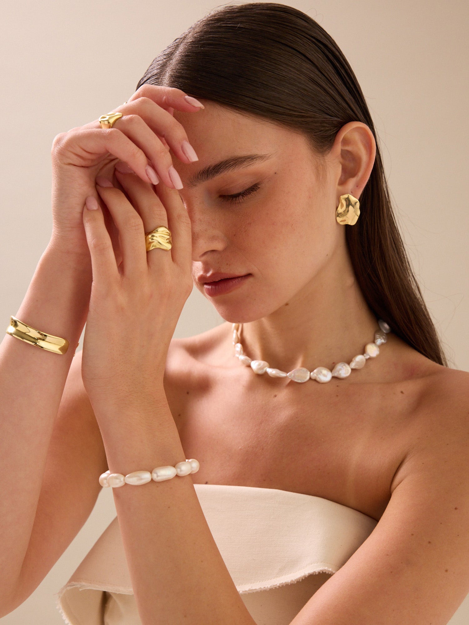 Anel Grande, Banhado a Ouro, Nenhuma pedra, Sem cor, Forma não específica, Dourado, 5.92 gramas.