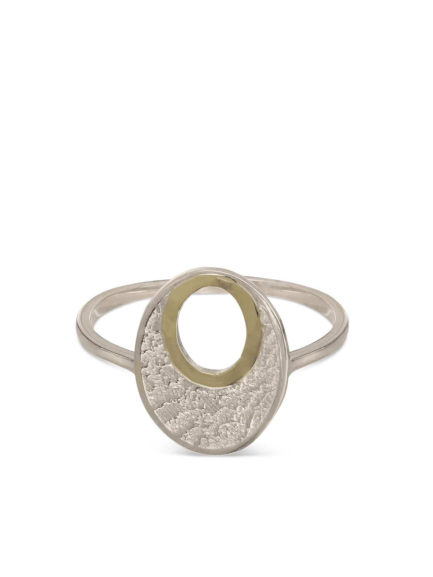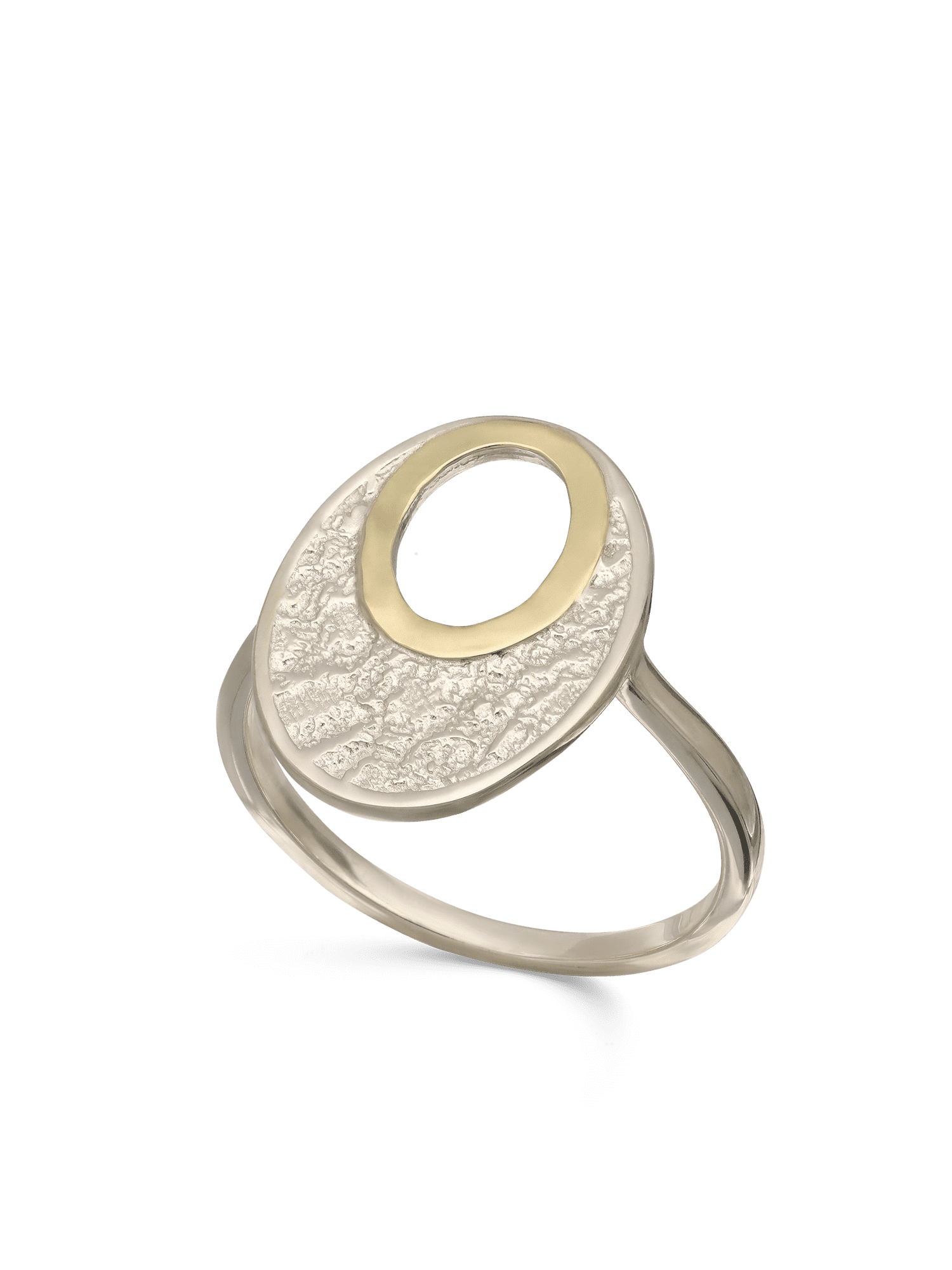 Anel Delicado, Prata de lei com ouro 9K, Nenhuma pedra, Sem cor, Círculo, DOIS TONS, altura do anel: 2.1 cm, 2.70 gramas.