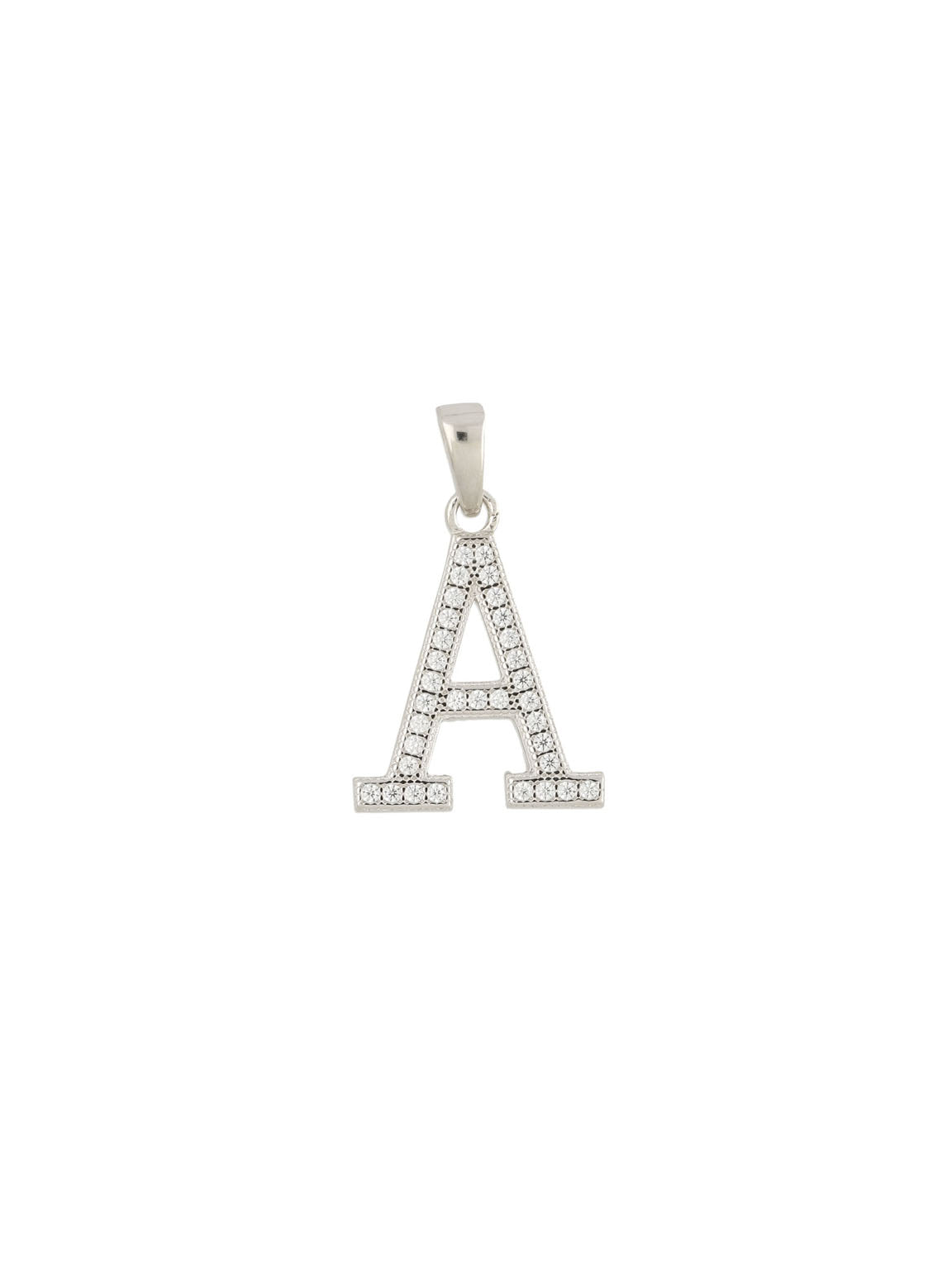 Pingente, Prata de lei 925, Zircónia de cultivo, Claro, Letra, Prateado, 1.22 gramas.