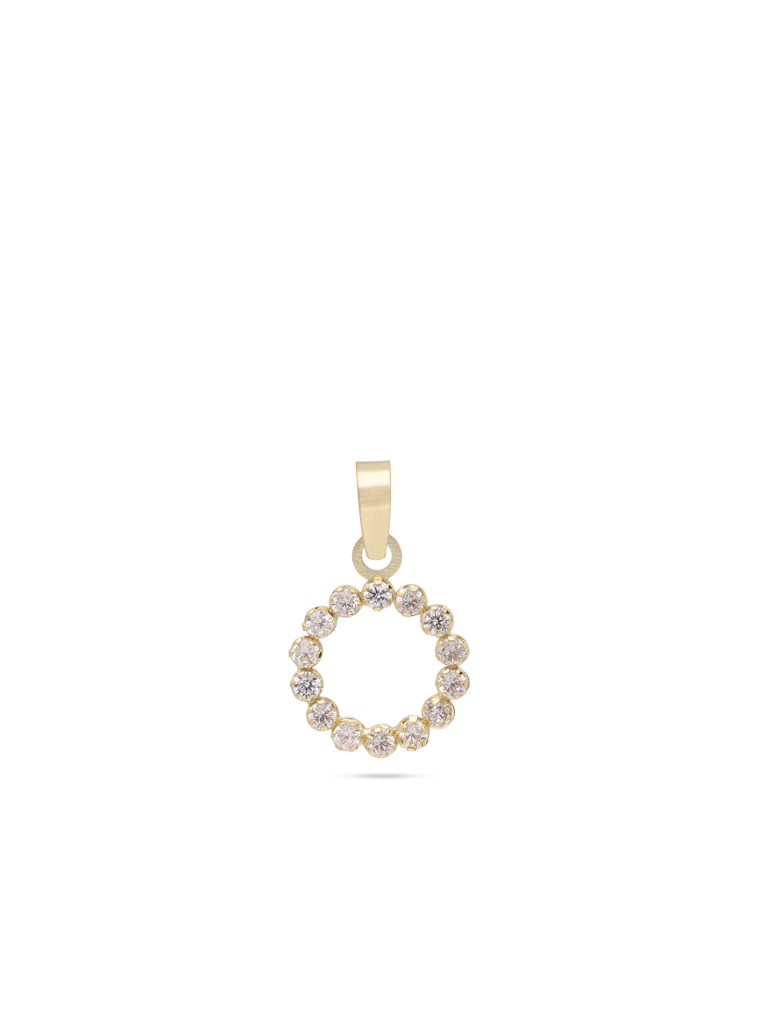 Pingente, Ouro de 9 quilates, Zircónia de cultivo, Claro, Círculo, Feito à mão, Ouro amarelo de 9K, comprimento do pendente: 1.5 cm, largura do pendente: 1.0 cm, 0.29 gramas.