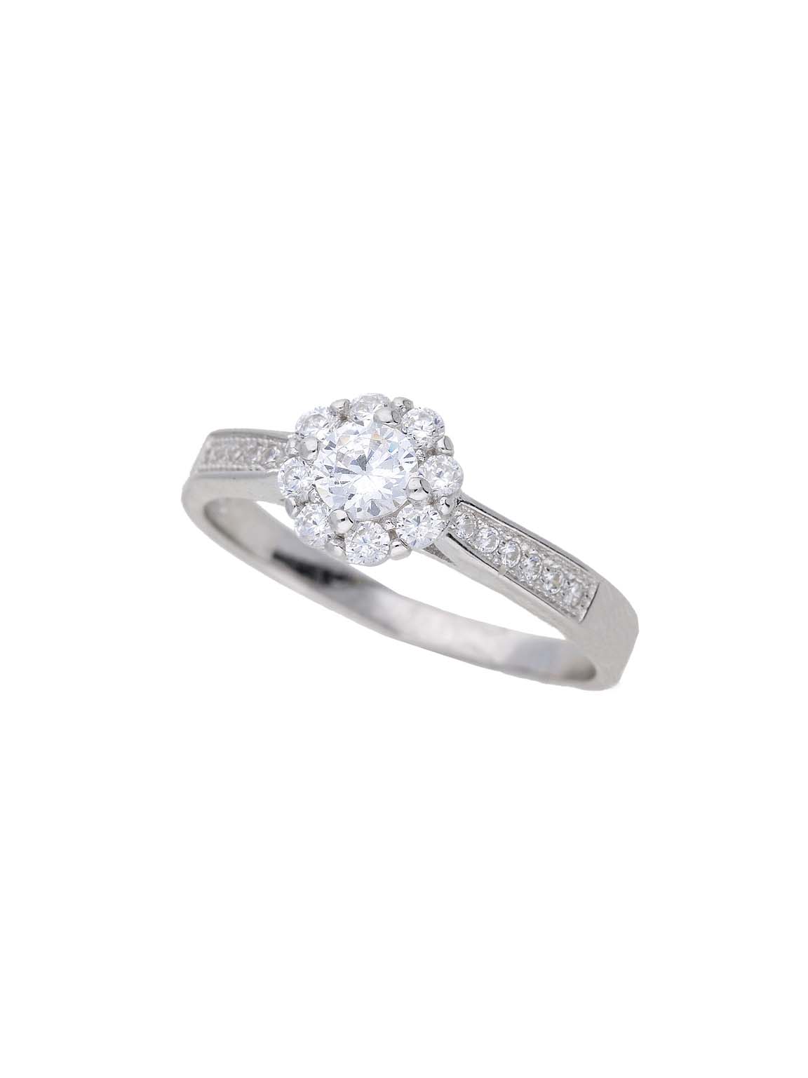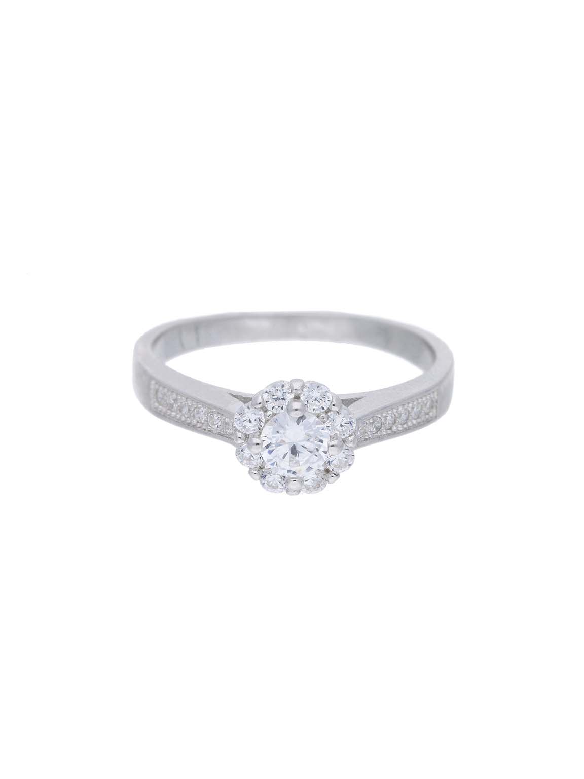 Anel Delicado, Prata de lei 925, Zircónia de cultivo, Claro, Flor, Feito à mão,, Prateado, 2.69 gramas.